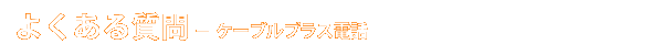 サービス全般に関する よくある質問 ケーブルテレビに関する よくある質問 インターネットに関する よくある質問○フレッツ光 コースに関する よくある質問ケーブルプラス電話に関する よくある質問サービス全般についてNTT回線からの切り替えについてお申込み・電話機・オプションサービスについてご利用について