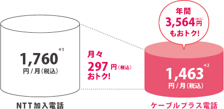 基本料が月額 1,463円(税込)なので、NTT加入電話よりとってもおトク!